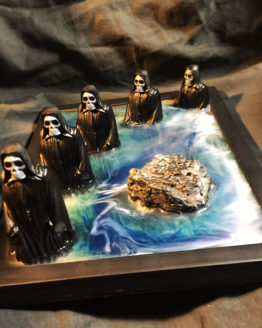 First off what is this “bootleg toy” thing all about? Well, I’ve definitely used things like: pieces of barbie dolls, electronic toys, baby doll heads, and other pre-existing toys in my own art for as long as I can remember. I once painted a picture that had barbie pieces, reshaped with a dremel to look like body part of a corpse with exposed bone and flesh, hanging by strings from a picture frame. I’ve even taken photos of a “baby doll skull” for a tshirt design, and more… So making art that co-opted pieces of already existing “corporate art” is no stretch for me but it wasn’t until more recently that I discovered the world of “Bootleg Toys“, aka “Bootleg Figures” depending on who you’re talking too…