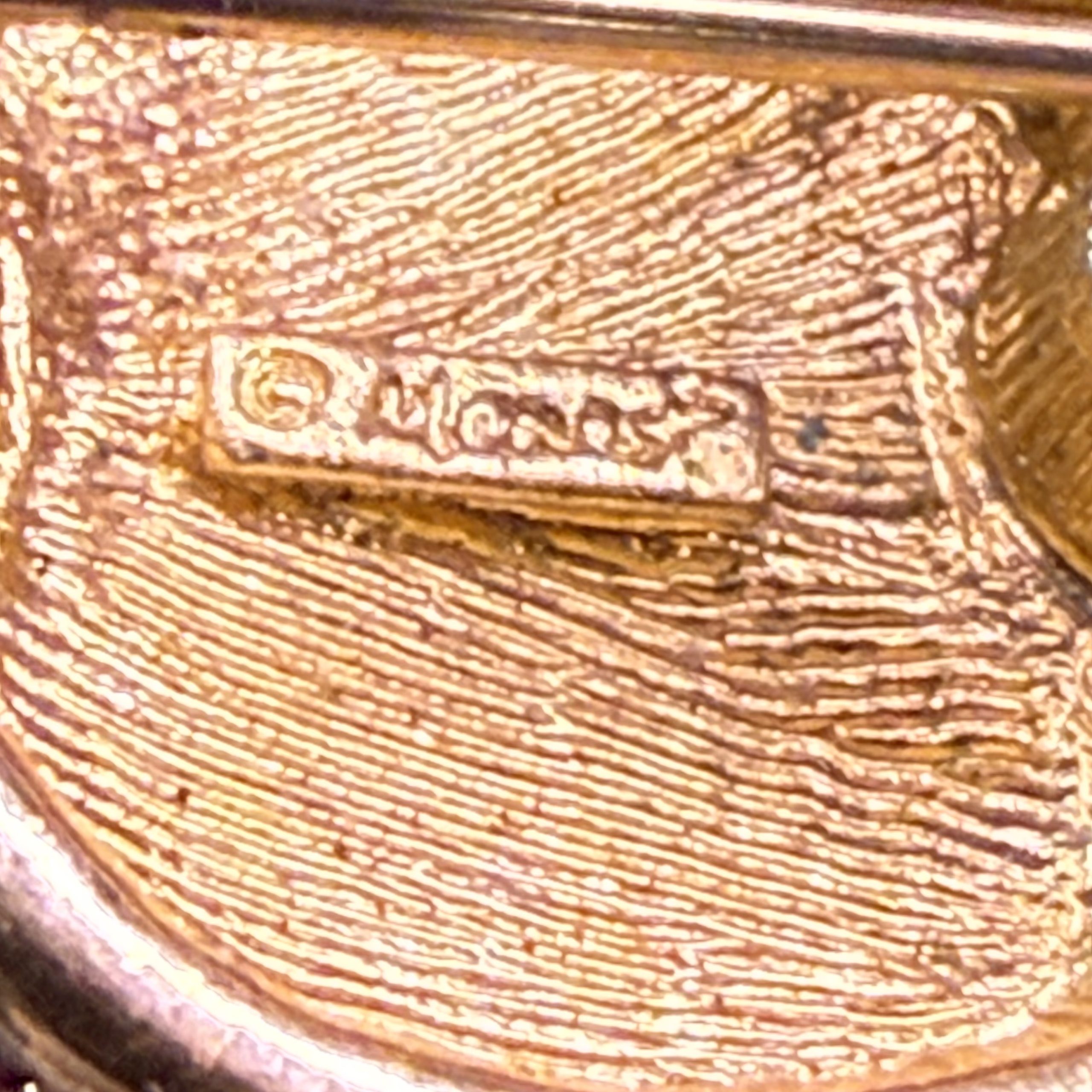 Vintage signed Monet ladybug brooch with ruby and white crystal rhinestones on a gold-tone base metal.