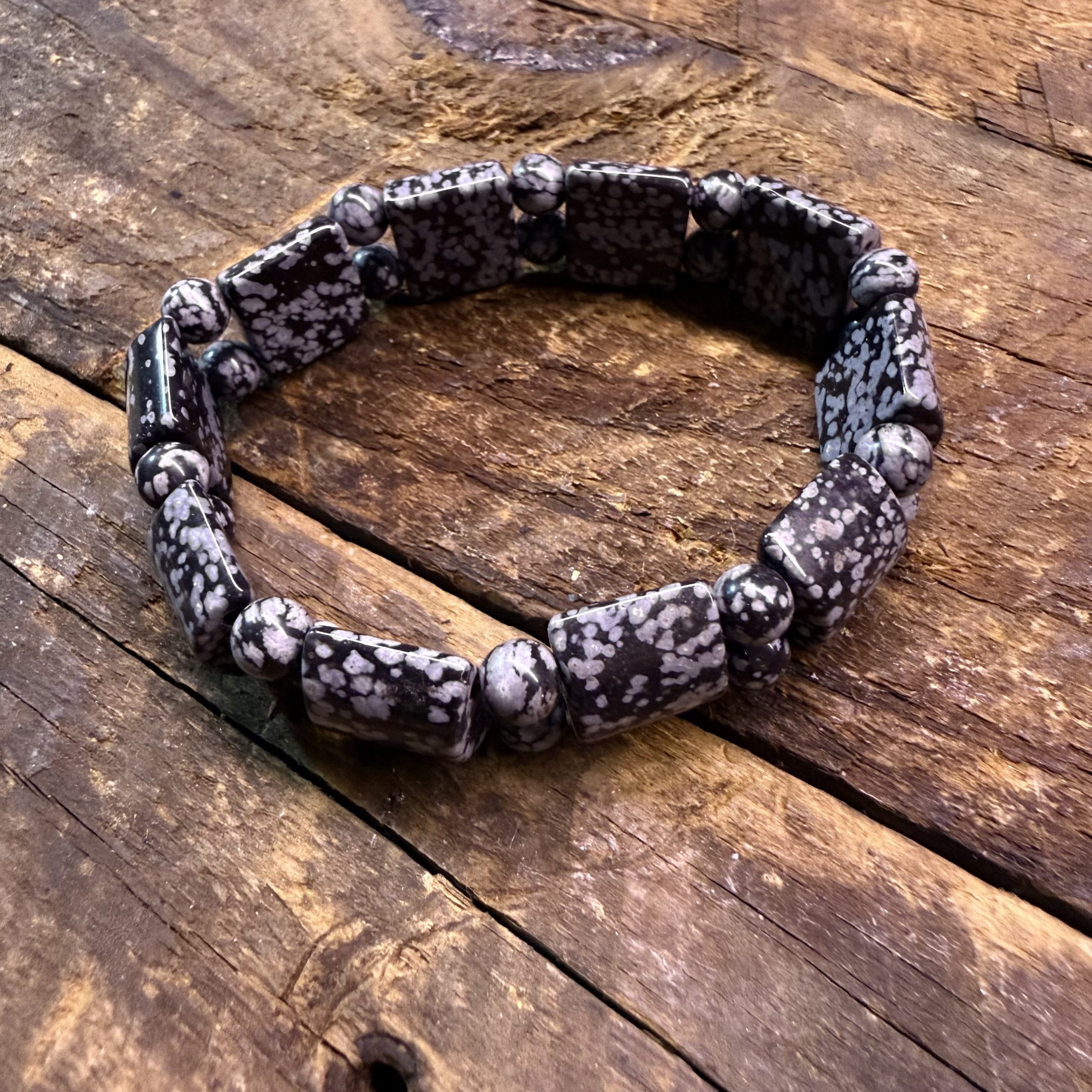 7″ Stretchy bracelet in multiple styles: Turquoise, Snowflake Obsidian, Jasper style stone beads.