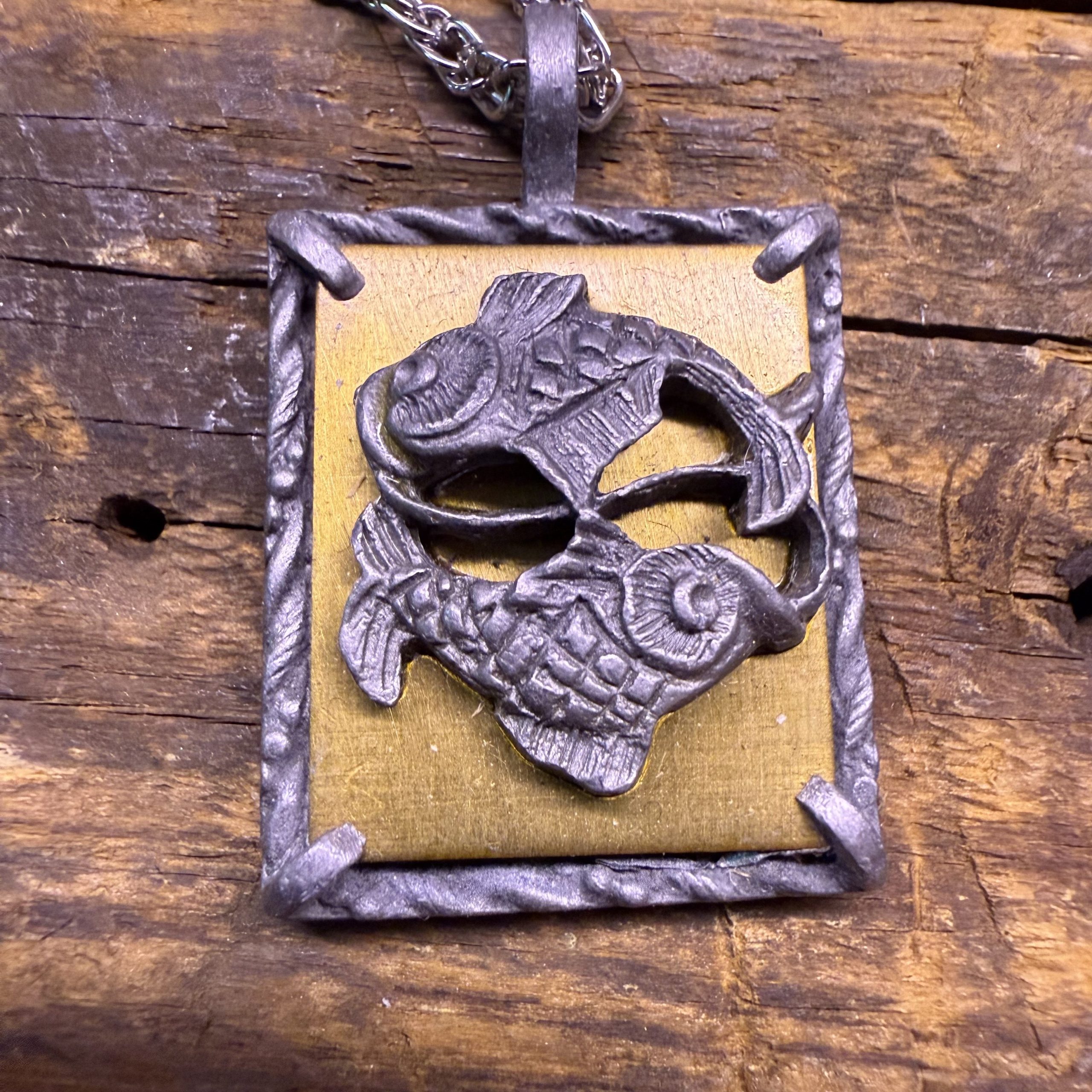 16″ Pewter and brass zodiac pendants on silver tone chain. Multiple designs, see pic: Cancer Crab, Sagittarius Archer, Aquarius Mermaid, Aries Ram, Taurus Bull, Scorpio Scorpion, Pisces Fish.